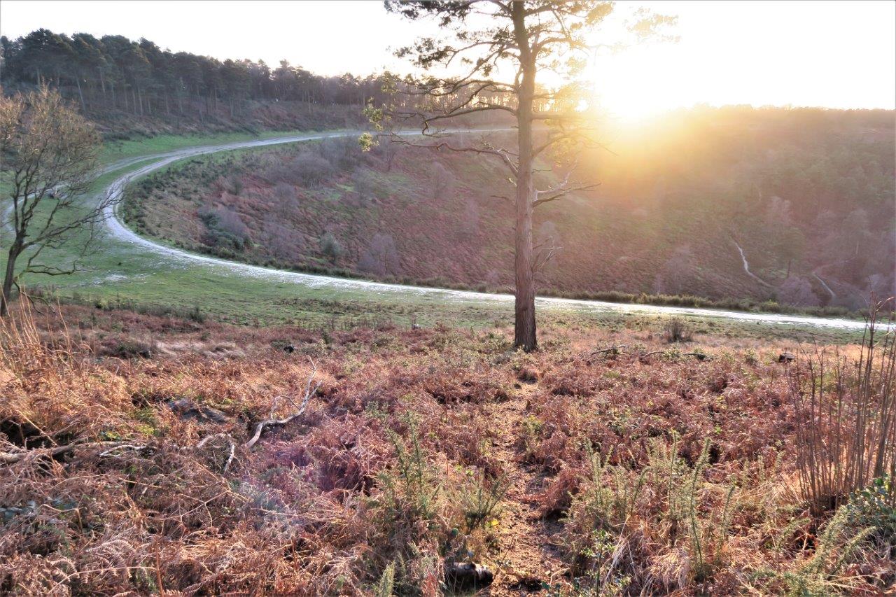 Gibbet Hill stands at highest point of the rim of the bowl at 272m (892ft) and is the second highest point in Surrey. From the top of this sandstone hill, it is possible to have clear crisp views over the Surrey Hills on a bright winter’s day.